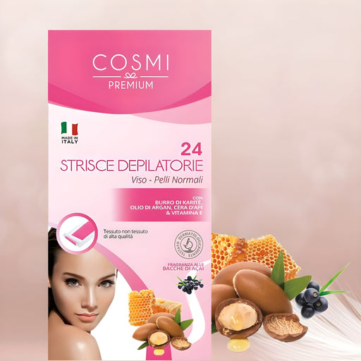 Tiras depilatorias faciales, manteca de karité y aceite de argánConsigue una depilación eficaz y rápida con las Tiras Depilatorias Faciales COSMI P...
