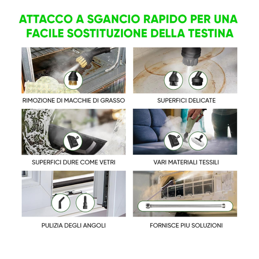 Rendi le pulizie veloci, ecologiche e super efficaci con i nostri prodotti per la pulizia a vapore. Perfetti per pavimenti, tessuti, tappeti e superfici delicate, offrono una pulizia profonda senza detergenti chimici.