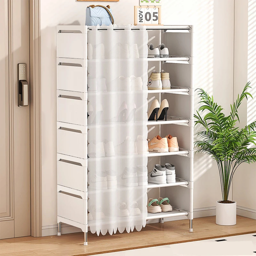 Scarpiera Salvaspazio 7 Ripiani con Tenda Copripolvere
